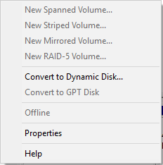 Right-click on Windows bottom and choose Disk Management; Download free partition software Macrorit Partition Expert, install and Run it; Right-click on C Drive, for example, and check the difference between the right-click-menu; Right-click on the whole disk, check the menu difference again;