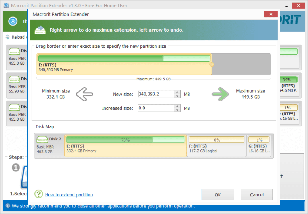 You may have noticed that during extending, Partition Extender auto shrinks the partition next to it and if there’s unallocated space on the disk, it is auto merge to the partition, one step result in 2 or 3 changes on the disk, easier, right?