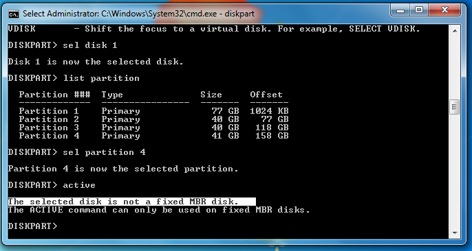 The selected disk is not a fixed MBR disk. The ACTIVE command can only be used on fixed MBR disks | Solution | |